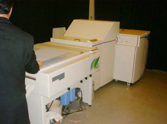 いよいよ今までコンピューターで作られていたデジタルデータが紙面印刷用の刷版(シルバーデジプレート及びPS版)へと姿を変えます。 各編集作業用Macintoshから直接出力機(イメージセッター)にデータが送られ、自動的に出力されます。 出力された刷版は、自現機(自動現像機)にかけられ現像。完全な刷版が出来上がります。 北海民友新聞社では、1998年に最新鋭の高解像度出力機(イメージセッターPanasonic KX-J137LZ)を導入。 また2002年6月には、こちらも最新鋭の超高解像度出力機(CTPバイオレットセッターVIPLUS・三菱ダイヤミック社製)と大型二色両面印刷機(篠原商事株式会社製)を導入。これにより入稿からデザイン製作、刷版出力、さらには印刷機への版掛け作業及び印刷後のインク洗浄に至るまで一連の作業がCTP(コンピューター・トゥ・プレート)化されました。 さらに2009年9月、遠紋地域では初のB2判ストレート高速オフセット4色機(RYOBI 784E)を導入。カラーマネジメントも一層強化され、今まで以上に、より高品位な印刷物をスピーディーにお客様に提供できるようになりました。 このように最新鋭の機材により、さらなる新聞のビジュアル化、カラー化、多ページ化、一般印刷の高品位化・短納期に対応できる体制を整えるとともに、最新のニュース、クオリティの高い広告・印刷物を『早く、多く、美しく』読者の皆さまへお届けするため、常に努力しています。 |